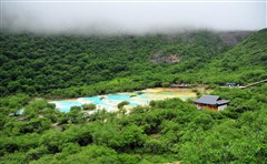 进入黄龙景区,首先看到的是一组精巧别致、水质明丽的池群--迎宾池。池子大小不一,形状奇特, 色彩艳丽,错落有致,四周山岳环峙,林木葱茏,山间野花竞放,彩蝶飞舞。山间石径曲折盘旋, 点缀着观景亭阁,倍添情趣。D2