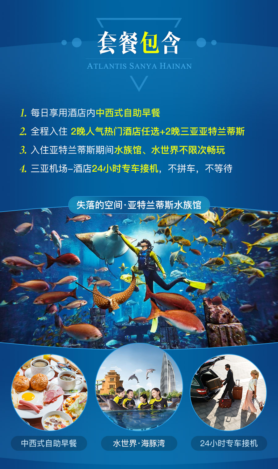 全球限量·迪拜同款亚特兰斯·海景房2晚+2晚人气热门5钻酒店 A线入住亚特酒店无限次畅玩水族馆+水世界 24小时专车接机/微信管家服务 亲子/蜜月优选线