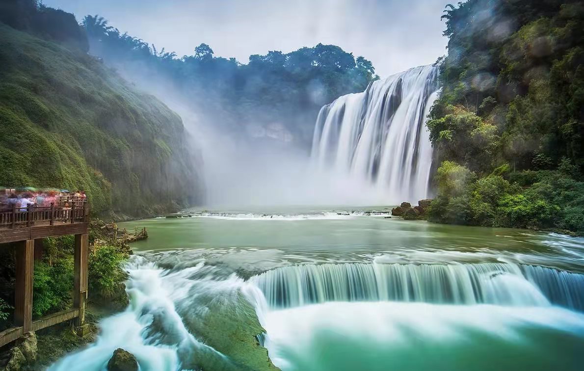• 黄果树瀑布久负盛名,是中国和亚洲第一大瀑布,晴空之时,阳光照在瀑布上,常会出现绚烂的彩虹,水花四溅,雾气弥漫,叹为观止。徒步陡坡塘的神秘步行路段,探索天星洞,藏于深处的银帘坠瀑布。
